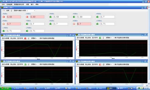 本系統(tǒng)以工業(yè)控制計(jì)算機(jī)作為上位機(jī),通過由 5 芯屏蔽電纜線連接的 RS-485 通訊網(wǎng)絡(luò),來實(shí)時(shí)采集安裝在現(xiàn)場(chǎng)的若干臺(tái) REN300 在線 x- γ輻射安全報(bào)警儀和多個(gè)不同量程的 X、γ射線探頭 . 通過對(duì)采集數(shù)據(jù)的加工處理,系統(tǒng)以文本數(shù)字、動(dòng)態(tài)圖形曲線、動(dòng)態(tài)圖形符號(hào)、動(dòng)態(tài)顏色、報(bào)警聲音的方式向管理人員和現(xiàn)場(chǎng)工作人員呈現(xiàn)輻射現(xiàn)場(chǎng)的劑量率信息。同時(shí)在保證系統(tǒng)穩(wěn)定運(yùn)行的前提下,系統(tǒng)能連續(xù)保存 30 個(gè)輻射探頭 5 年以上的歷史數(shù)據(jù),為輻射環(huán)境評(píng)價(jià)提供重要的數(shù)據(jù)依據(jù) . 此外系統(tǒng)還提供對(duì)歷史的報(bào)警數(shù)分析報(bào)表、平均劑量率分析報(bào)表等統(tǒng)計(jì)分析功能。本系統(tǒng)是一套成熟的、完善的、實(shí)用的系統(tǒng),已在多個(gè)地方安裝并運(yùn)行。